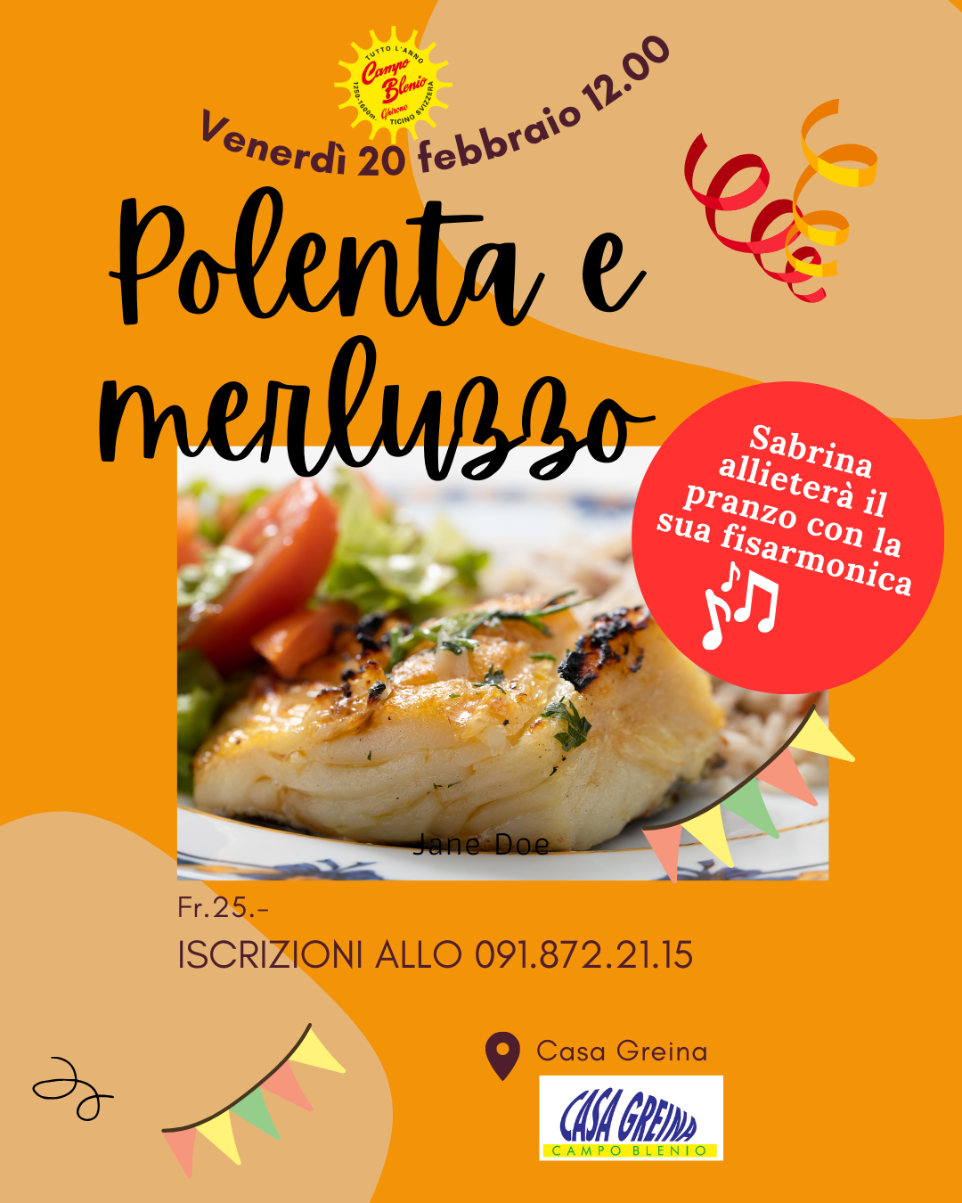 Venerdì 20 febbraio 12.00 polenta e merluzzo, musica con Sabrina. […]